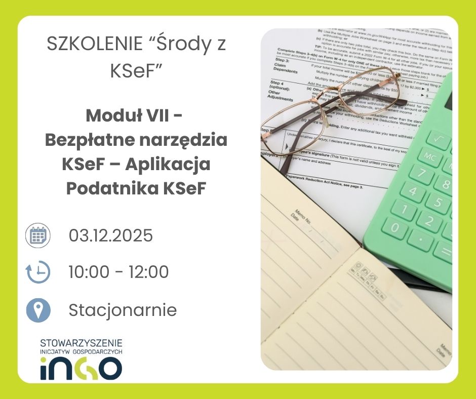 Temat najbliższego szkolenia: „Bezpłatne narzędzia KSeF – Aplikacja Podatnika KSeF”.