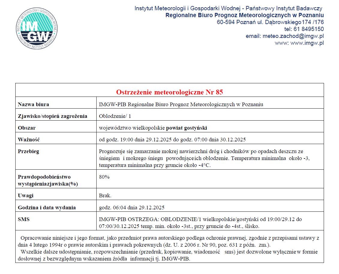 Ostrzeżenie meteorologiczne Paweł Maćkowiak2025-12-29T09:05:46+01:0029 grudnia, 2025| KALENDARZ WYDARZEŃ DLA MIESZKAŃCA PONIEC Poniec to tutaj z przyszłością Aktualności Kalendarz wydarzeń Zagospodarowanie przestrzenne Strategia rozwoju Bezpłatna pomoc prawna Strefa płatnego parkowania Środki zewnętrzne O GMINIE Historia Honorowi obywatele Kultura Sport Wieści z gminy Poniec Media SAMORZĄD Burmistrz Rada Miejska w Poniecu Komisje Sołtysi Jak załatwić sprawę DLA TURYSTY ZWIEDZANIE Zabytki Gmina Poniec w obiektywie SZLAKI Szlaki rowerowe REKREACJA Stawy Dzięczyńskie DLA BIZNESU INWESTUJ W PONIECU Poniecka Strefa Inwestycyjna INFORMATOR URZĘDY/INSTYTUCJE Urząd Miejski w Poniecu Gminne Centrum Kultury w Poniecu Ośrodek Pomocy Społecznej w Poniecu Ośrodek Sportu i Rekreacji w Poniecu Gminny Zakład Wodociągów i Kanalizacji w Poniecu Gminny Zespół Obsługi Szkół w Poniecu E-urząd OŚWIATA Przedszkole Samorządowe w Poniecu Przedszkole Samorządowe w Łęce Wielkiej Szkoła Podstawowa w Poniecu Szkoła Podstawowa w Żytowiecku Szukaj Podobne wpisy XIX Sesja Rady Miejskiej 27 stycznia, 2026 Ostrzeżenie meteorologiczne 26 stycznia, 2026 Debiuty Biznesu 2025 – gala finałowa już 29 stycznia! 26 stycznia, 2026 ZAPISY DO PRZEDSZKOLA Dyrektor Przedszkola Samorządowego w Łęce Wielkiej ogłasza nabór dzieci na rok szkolny 2026/2027 23 stycznia, 2026 Dofinansowanie z Funduszu Pracy dla pracodawców szkolących młodocianych 23 stycznia, 2026